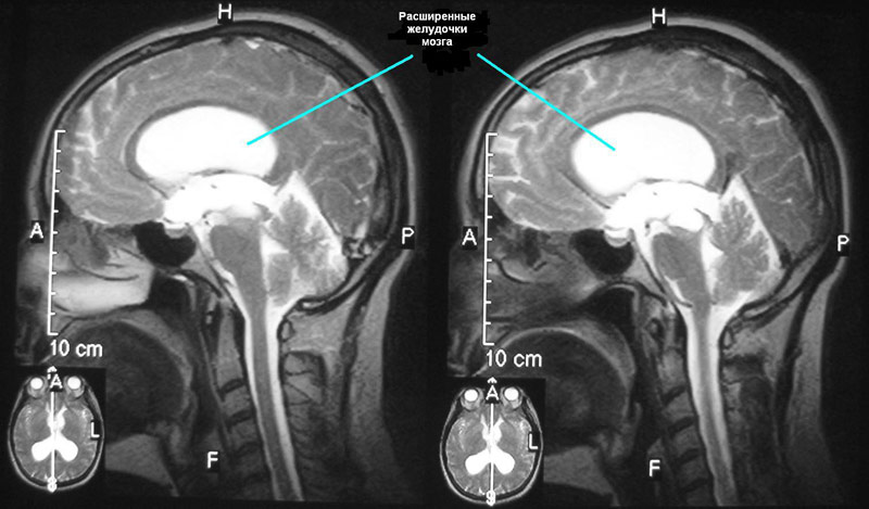При увеличении правого или левого желудочков головного мозга диагностируется заболевание под названием «вентрикуломегалия». Оно приводит к нарушениям работы ЦНС, неврологическим отклонениям и способно спровоцировать развитие ДЦП. Подобная патология чаще всего выявляется еще при беременности на сроке от 17 до 33 недель (оптимальный период обнаружения патологии – 24-26-я неделя).