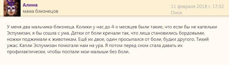 Причиной возникновения боли может быть любая, из вышеупомянутых, но в любом случае все младенцы проходят этот период. Ведь колики это не болезнь, это очищение организма и адаптация желудка к новой пище. Эспумизан поможет уменьшить длительность и интенсивность болей.