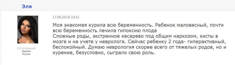 Ребенок, находящийся в утробе женщины, получает огромную дозу отравляющих веществ за 1 раз, что может привести не только к нарушению функций органов плода, но и к никотиновому опьянению на поздних неделях беременности перед родами. Дети получают огромные, неконтролируемые дозы токсинов, даже появившись на свет в установленные природой сроки, чаще всего несколько месяцев лежат в палате реанимации. Их перегруженные химией легкие не раскрываются полностью, у ребенка отсутствует самостоятельное дыхание, без специального аппарата.