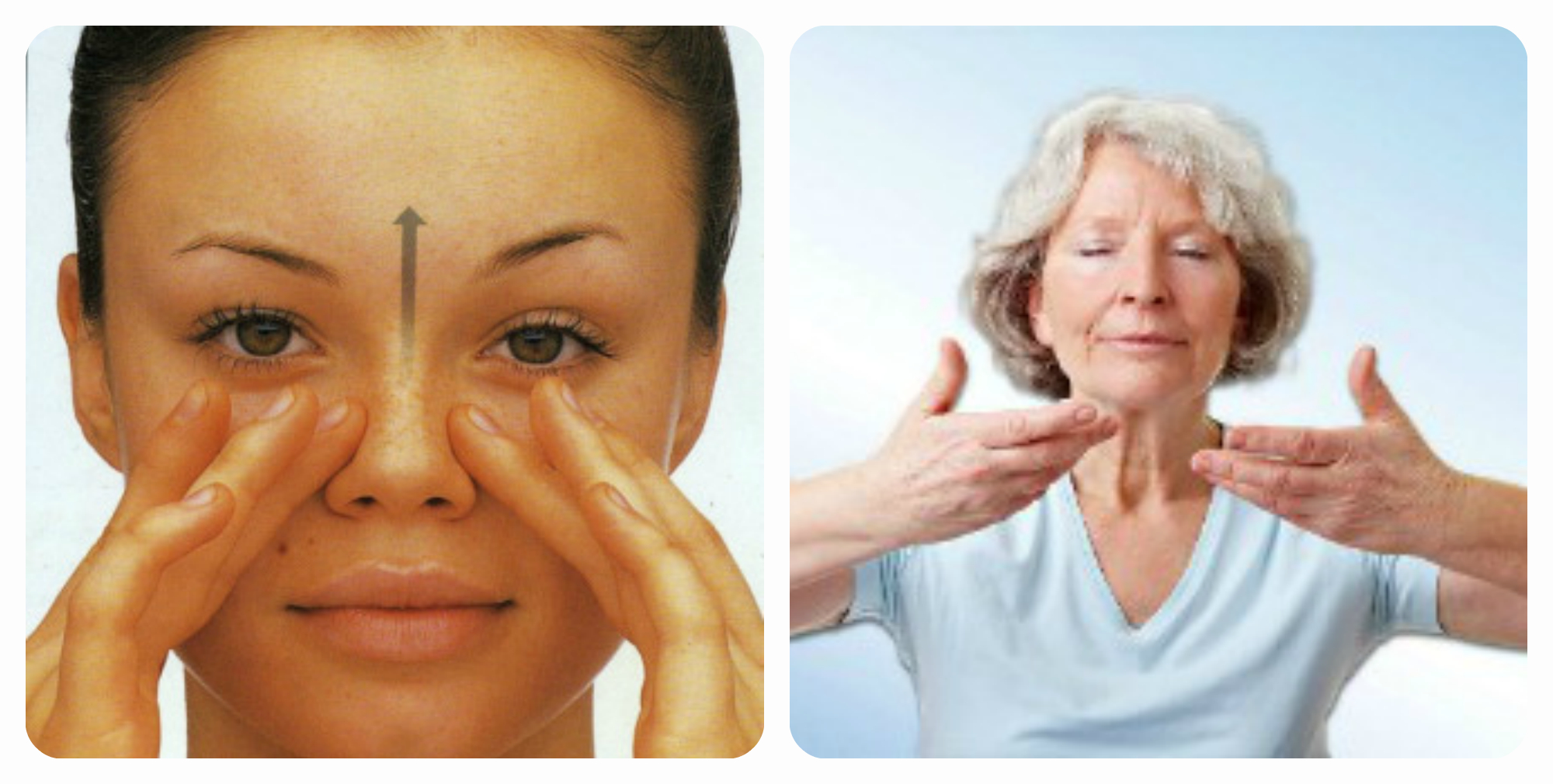 - массаж легкими круговыми движениями переносицы (переносица — точка между глазами), лица, шеи, головы;