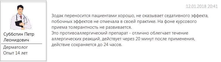Отрицательные отзывы о Зодаке крайне редки и объясняются его низкой эффективностью для конкретного пациента с индивидуальными особенностями течения заболевания.